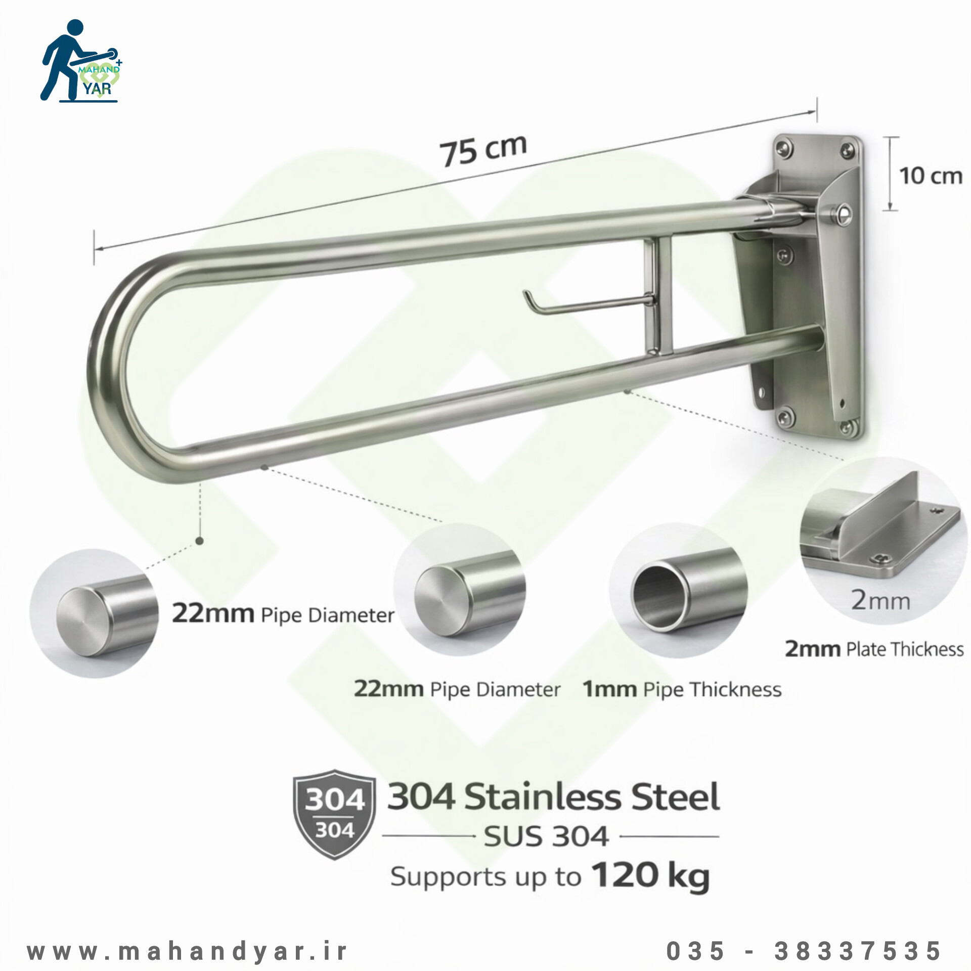 دستگیره استیل تاشو متحرک کمک سالمندی و توان بخشی تولید شرکت فنی مهندسی مهند، یک راهکار حرفهای و ایمن برای سرویسهای بهداشتی، حمام و محیطهای توانبخشی است. این محصول با طراحی مهندسیشده، مقاومت بالا و امکانات کاربردی، راحتی و امنیت کاربران سالمند و کمتوان حرکتی را تضمین میکند.