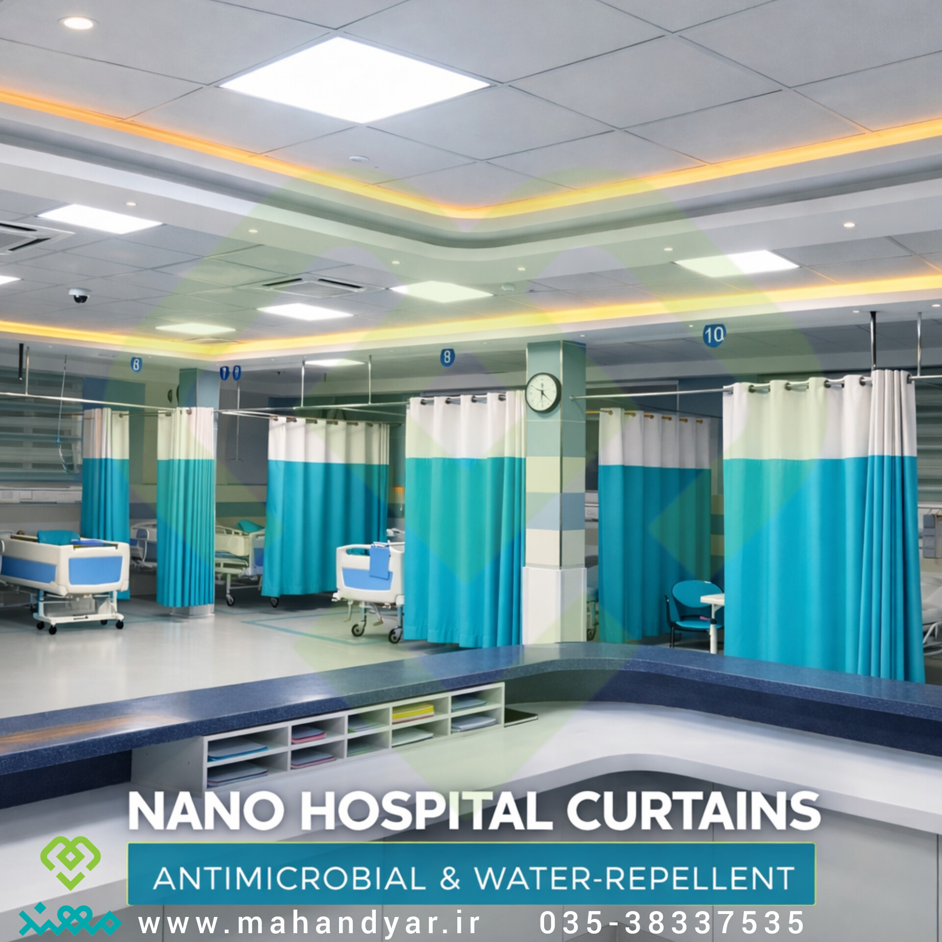 پردههای نانو آنتیباکتریال بین تختی بیمارستانی ارائهشده توسط شرکت مهند، راهکاری استاندارد و ایمن برای تفکیک فضای بیماران و ارتقای سطح بهداشت در محیطهای درمانی محسوب میشوند. این پردهها با بهرهگیری از فناوری نانو و خاصیت آنتیباکتریال، مانع از رشد و انتقال میکروارگانیسمها شده و نقش مؤثری در کاهش عفونتهای بیمارستانی ایفا مینمایند.