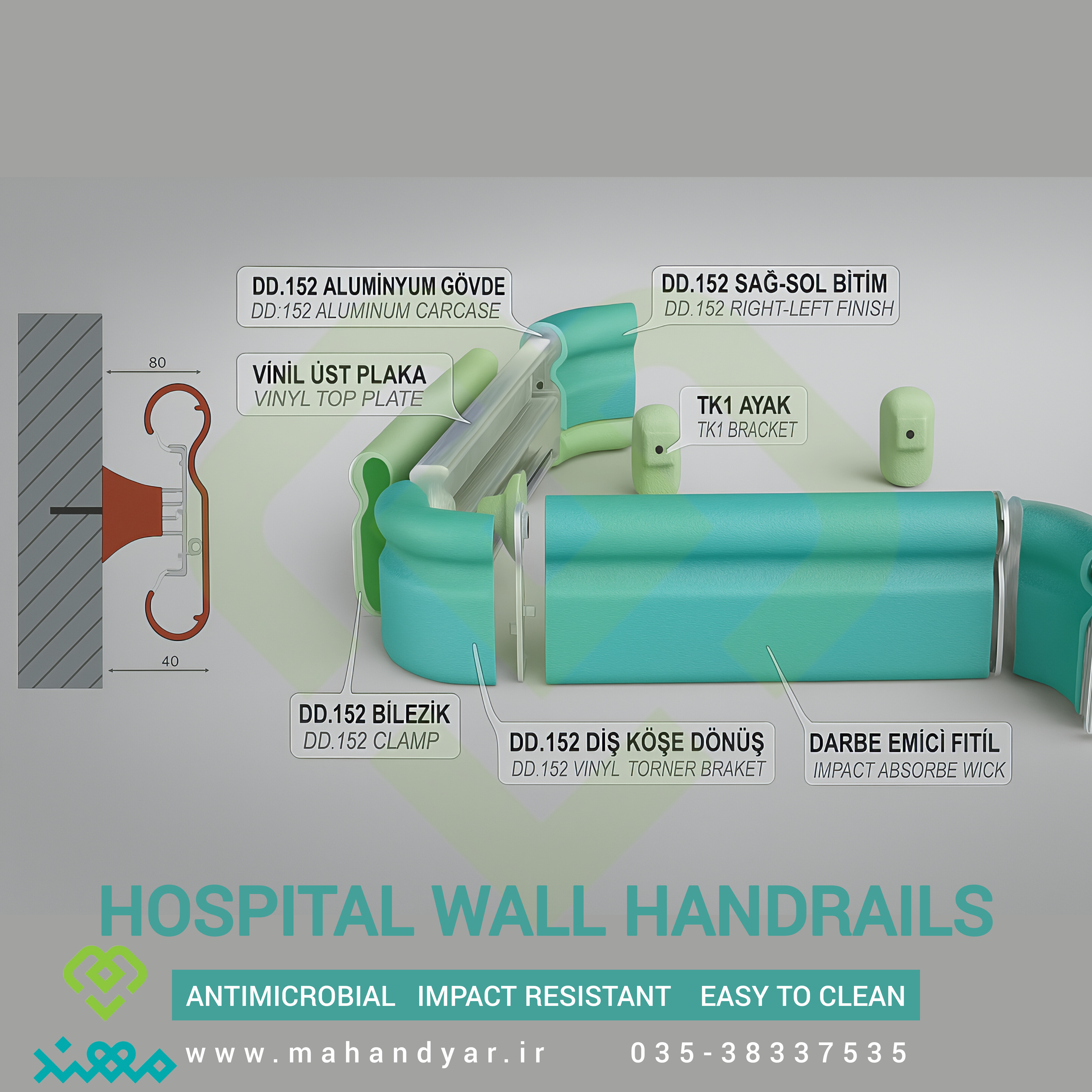 اگر به دنبال هندریل بیمارستانی استاندارد، ضربهگیر دیواری مقاوم، والگارد آنتیباکتریال و سیستم محافظ دیوار حرفهای برای پروژههای درمانی هستید، مدل DD152 انتخابی مطمئن و بلندمدت خواهد بود.