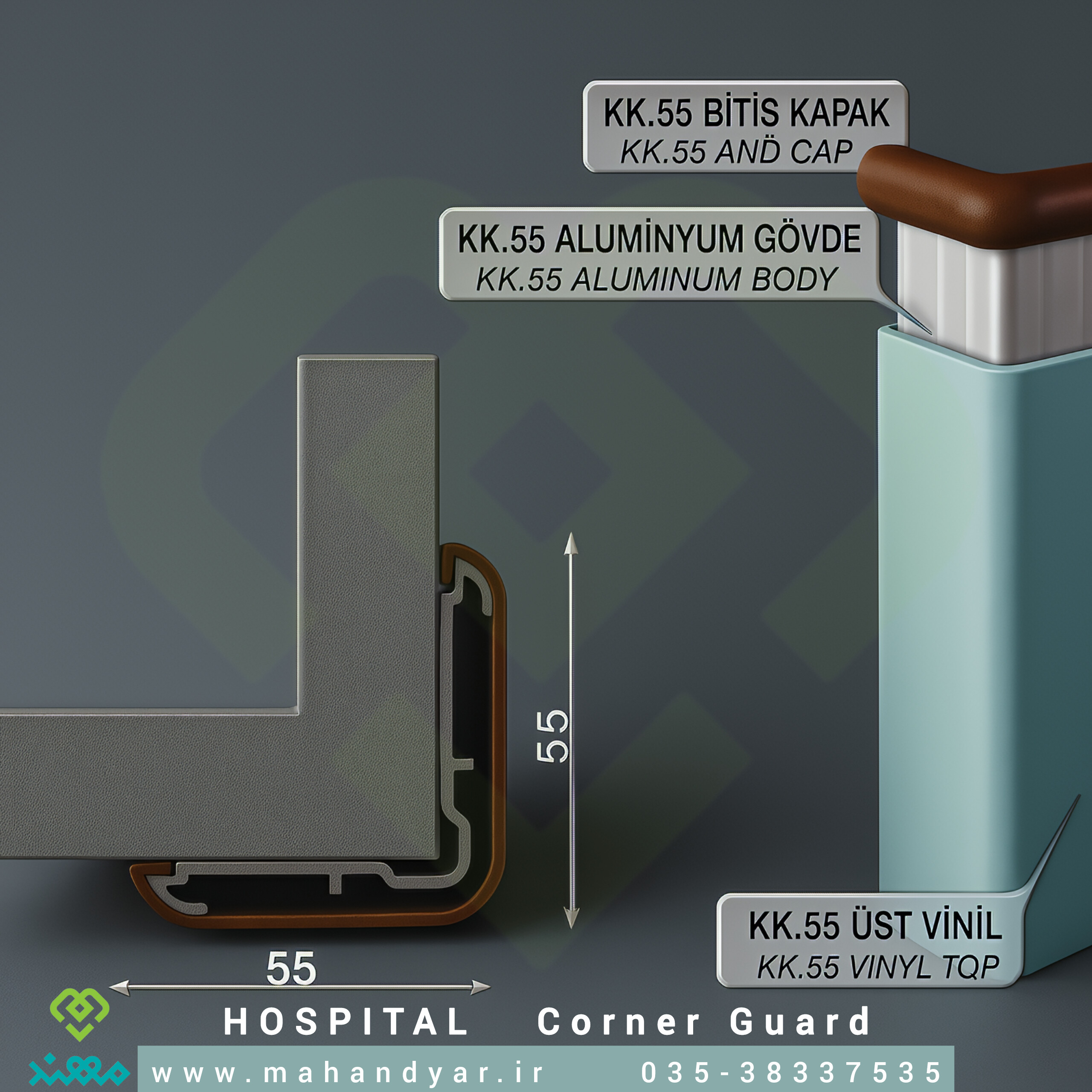 کرنرگاردهای تولیدی شرکت مهند با پروفیل داخلی آلومینیومی تقویتشده طراحی شدهاند که استحکام بالایی در برابر ضربه و فشارهای مداوم دارند. سطح بیرونی محصول با روکش وینیل آکریلیک پوشانده شده که دارای ویژگیهای ضد خش، آنتیباکتریال و مقاوم در برابر حریق بوده و امکان نظافت آسان با مواد شوینده بیمارستانی را فراهم میکند.