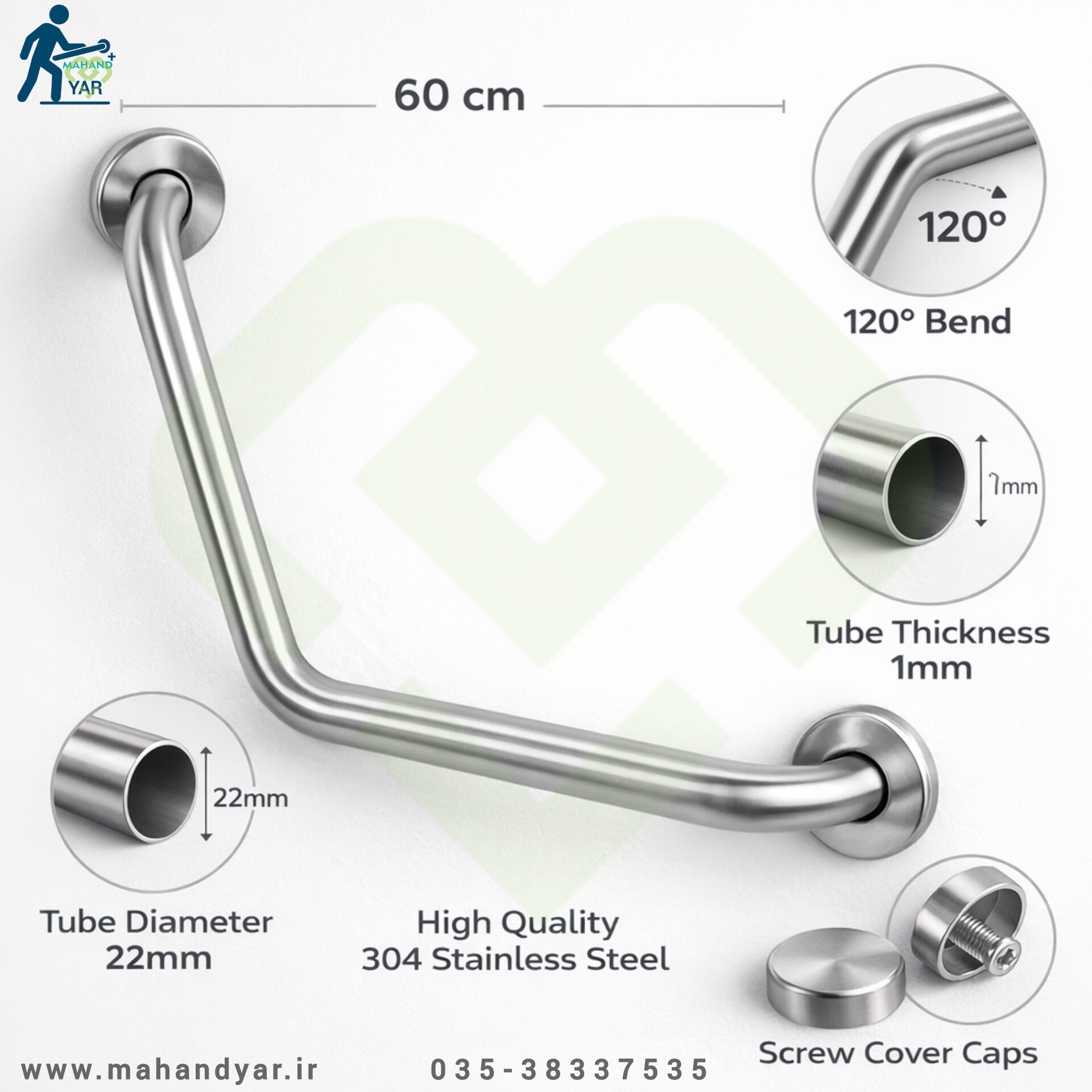 دستگیره ۱۲۰ درجه تولید شرکت فنی مهندسی مهند، با طراحی ارگونومیک و مقاوم، راهکاری ایمن و کاربردی برای تسهیل تردد سالمندان و بیماران در محیطهای درمانی و مراقبتی است. ساخته شده از استیل ۳۰۴ نگیر با قطر ۲۲ میلیمتر و ضخامت ۱ میلیمتر، این دستگیره ضمن مقاومت بالا در برابر خوردگی و ضربه، تحمل وزن و فشار کاربران را تضمین میکند. درپوشهای محافظ انتهایی، علاوه بر افزایش ایمنی، ظاهر یکدست و زیبایی را فراهم میآورند. نصب آسان و سازگار با استانداردهای بهداشتی، آن را به گزینهای مطمئن و حرفهای برای بیمارستانها، مراکز توانبخشی و منازل مراقبتی تبدیل میکند.