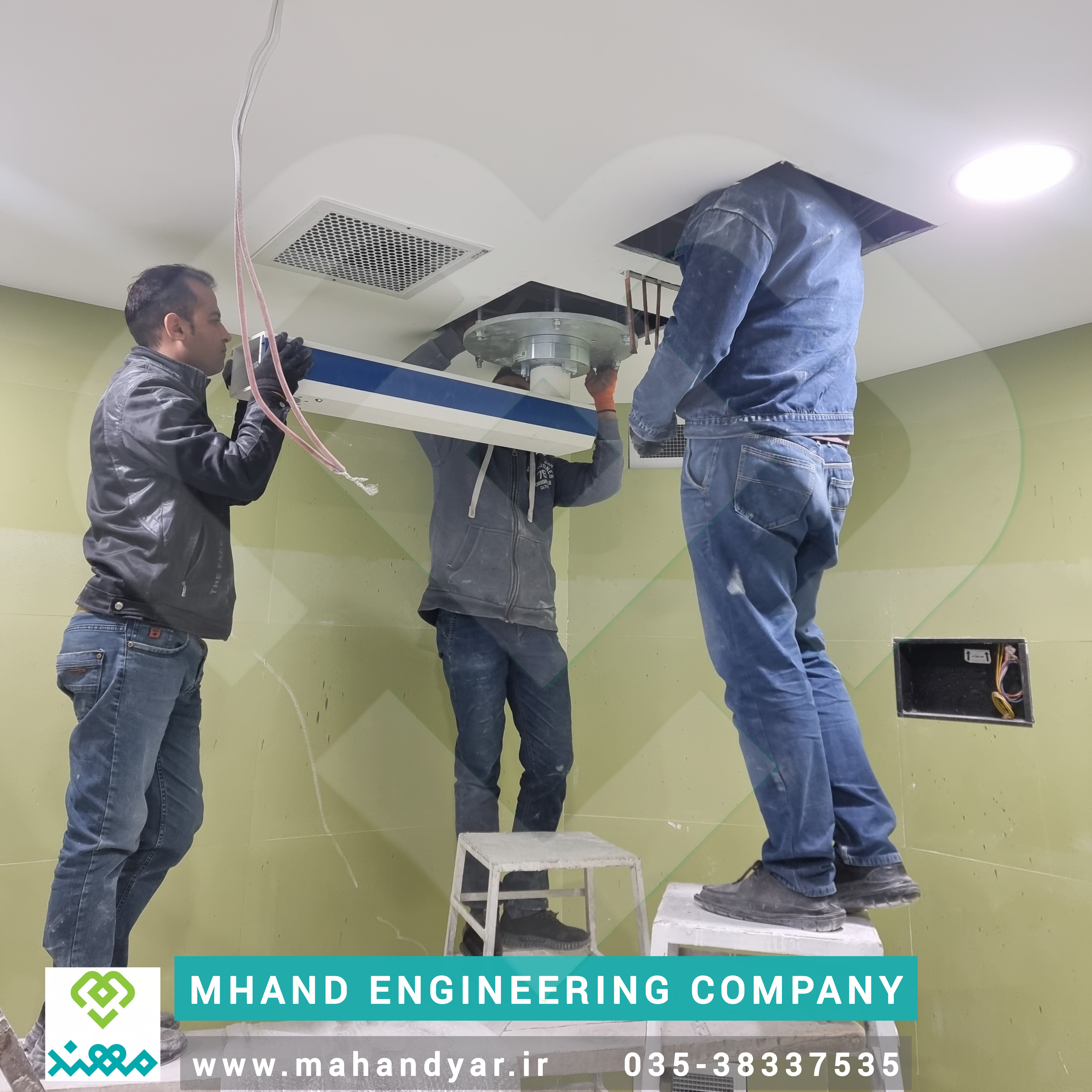 1. بررسی سازه و محاسبات باربری سقف قبل از نصب، وضعیت سازه سقف کاذب و سقف اصلی بررسی شده و ظرفیت تحمل بار دینامیک و استاتیک ستون، بازوها و تجهیزات متصل به آن محاسبه میگردد. در صورت نیاز، تقویت سازه فلزی (Base Plate / Anchor Frame) اجرا میشود.